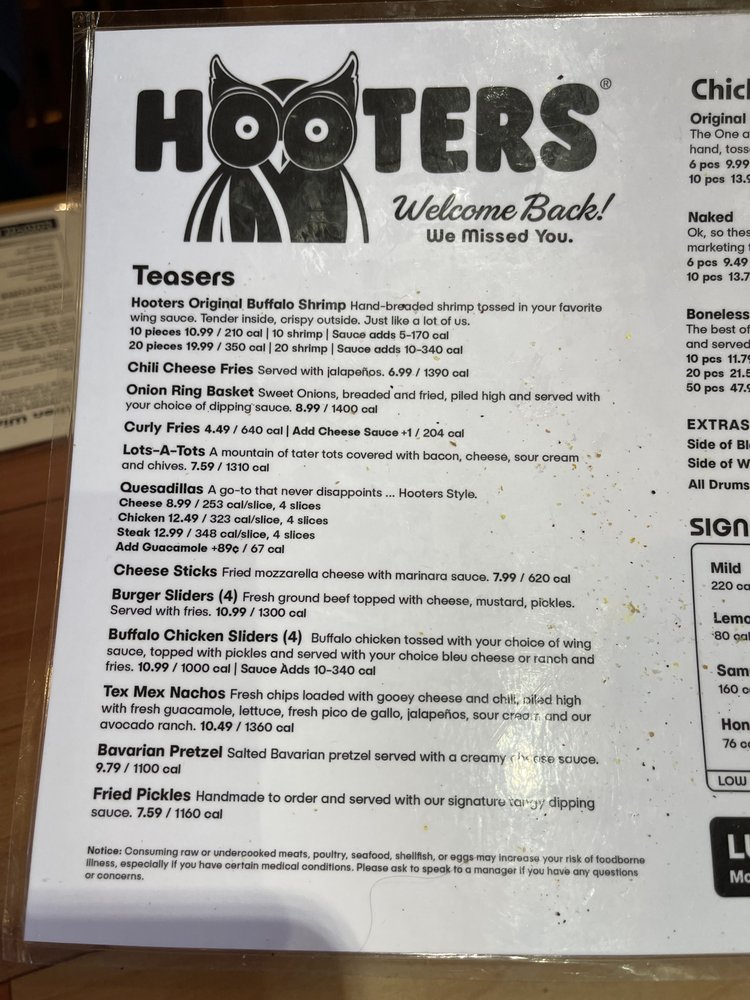 Hooters, known for its American-style chicken wings, offers a variety of options for both meat-lovers and vegetarians. With features like delivery, takeout, and reservations, Hooters caters to a wide range of customers. The menu includes famous Naked Wings, hand-breaded and tossed in signature sauces. Hooters also offers flavorful Hooterstizers such as Buffalo Shrimp and Buffalo Chicken Dip. For seafood enthusiasts, dishes like Fish and Chips and Snow Crab Legs are available. The casual atmosphere, full bar, and entertainment options like TV and pool tables make it a great spot for groups and families. With good service and a lively ambiance, Hooters is an ideal place for a fun dining experience.